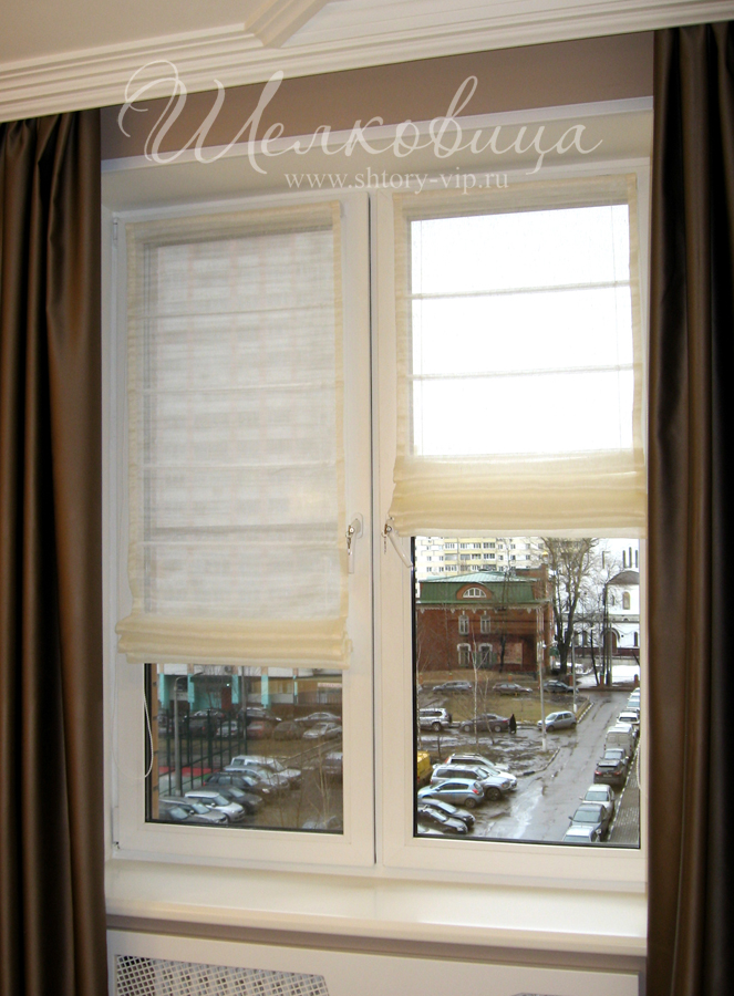 Крепление римских штор на пластиковую раму позволяет беспрепятственно открывать окна. Ручным управлением каждой отдельной шторы легко регулировать оптимальный поток солнечного света.