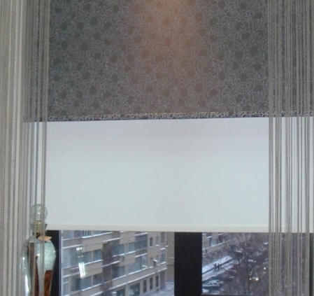 Решение: Сочетание веревочных штор с рулонными. Веревочные шторы выполняют функцию декорирования оконного проема. Рулонные шторы закрывают окно от посторонних глаз.