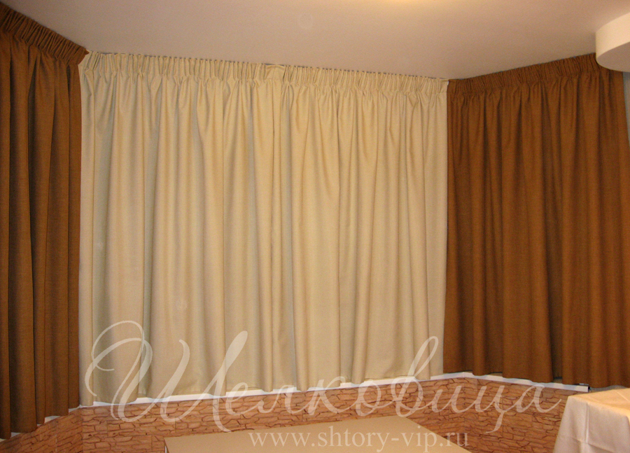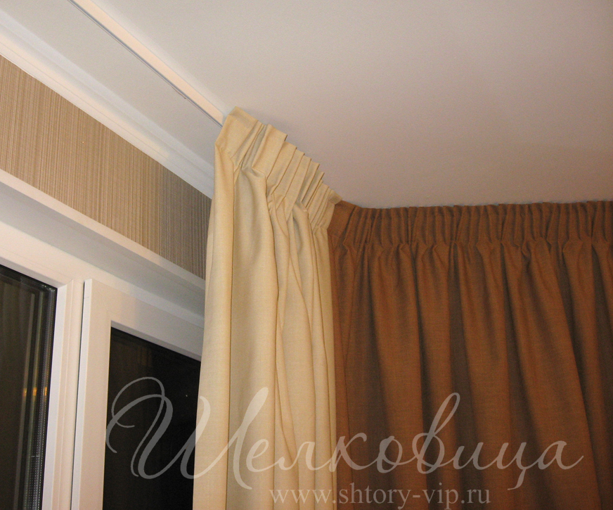 Длина штор до подоконника в этом эркере обусловлена наличием в квартире четвероногого члена семьи - доброй собаки со злыми зубами.
