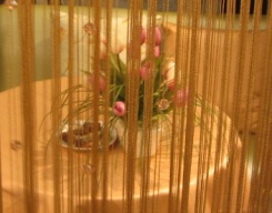 Решение: Вписываясь в интерьер, шторы разделяют помещение на 2 зоны, различные по функциональности.