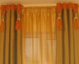 Решение: Шторы на люверсах с обтачкой Такие портьеры на люверсах с обтачкой сверху и снизу делают кабинет более строгим и гармоничным.