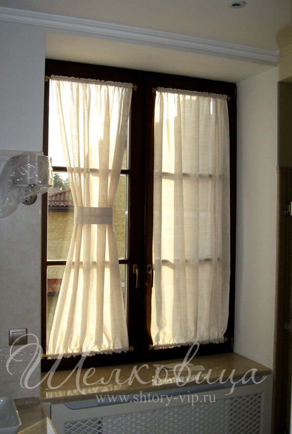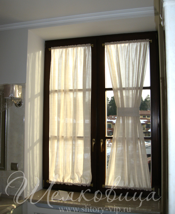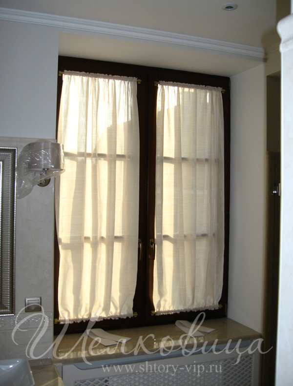 Решение: Оригинальная простота Изящно смотрятся шторки на окнах ванной комнаты второго этажа, своей формой напоминая песочные часы.