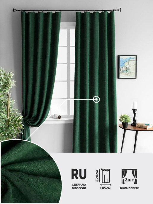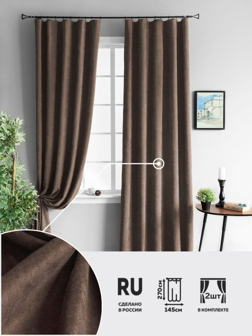 Комплект готовых штор из плотной ткани софт. Ткань имеет бархатистую мягкую фактуру. Портьеры обладают высоким уровнем светопоглощения, в зависимости от цвета - до 80%. Цвета сохраняют яркость и насыщенность даже под прямыми солнечными лучами. Ткань устойчива к износу и смятию. В комплект входят две шторы, которые крепятся на карниз при помощи шторной ленты. Этот вариант крепления обеспечивает простоту подвешивания и эстетичность драпировки. Частоту и глубину складок легко менять на свой вкус с помощью специальных нитей шторной ленты. Портьера подойдет к интерьеру различного стиля - прованс, модерн, кантри, скандинавский, классический. Комплект портьер из ткани софт прекрасно украсит окна в спальне, детской, гостиной. В комплекте 2 шторы, ширина одного полотна 145 см. Для более широких окон предлагаем комплекты из ткани софт шир. 200 см, артикул 11351023. В ассортименте 20 различных цветовых оттенков: от нежных пастельных до насыщенных ярких.