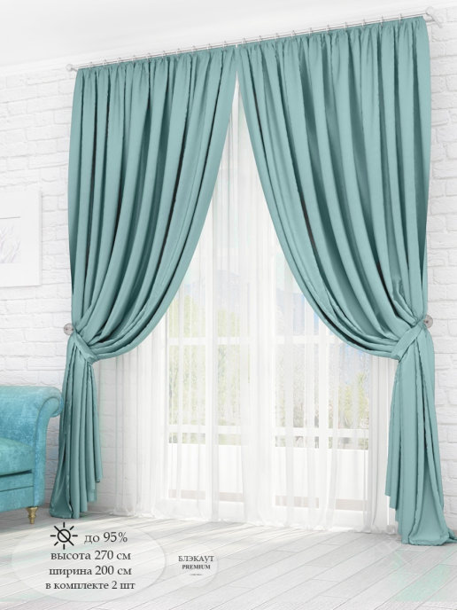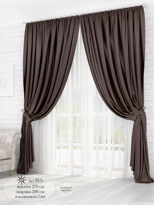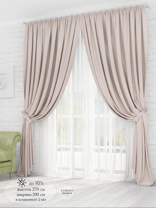 Комплект Алиса-люкс Блэкаут из коллекции - здоровый сон. В упаковке 4 предмета: шторы 2 шт - 270 см (выс) * 200 см (шир), подхват - 2 шт. Крепление к карнизу - шторная лента для крючков и кулиска (6 см), чтобы одеть на трубу. Блэкаут - светонепроницаемая на 90%, мягкая трехслойная ткань. Блэкаут отлично защищает от солнечных лучей, не выгорает, не линяет и имеет долгий срок службы. Благодаря многослойной структуре блэкаут задерживает посторонние звуки и шум. Шторы из блэкаута гипоалергенные и просты в уходе. Красивые, модные, благородные цвета нашей коллекции блэкаутов отлично смотрятся в современных интерьерах. Широкая шторная лента (6 см) позволяет регулировать ширину под Ваш карниз, легко стягивается при помощи шнуров и создает качественные и аккуратные складки.