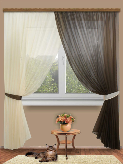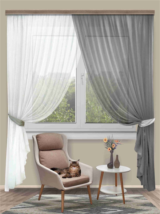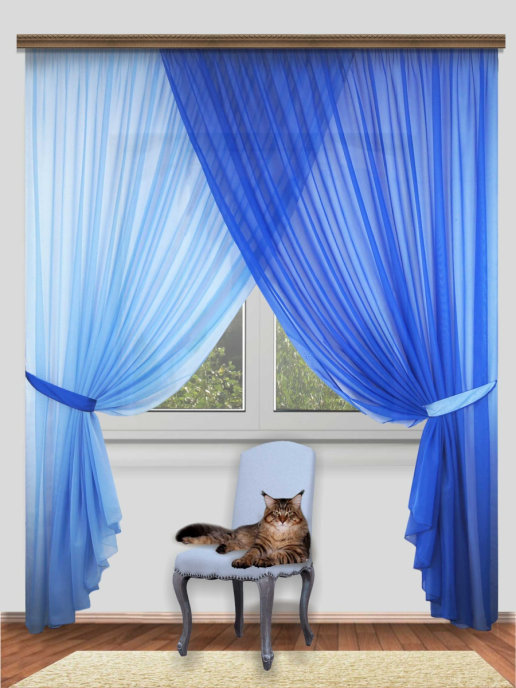 Комплект штор Блюз, торговой марки Манерные занавески, выполнен из вуали двух цветов-компаньонов. Более светлую вуаль поддерживает более темный подхват и наоборот. Игра полутонов - изюминка этой шторы. В упаковке 4 предмета: шторы 2 штуки, ширина 300 см, высота 250 см и 2 подхвата . Крепление к карнизу - за шторную ленту (ширина 6см) с помощью крючков или на штангу с помощью кулиски. Красивые широкие полотна могут быть вывешены внахлест или раздельно друг от друга. При покупке более одного комплекта, можно разнообразить варианты вывешивания. Оттенок может незначительно отличаться от представленного на фото.