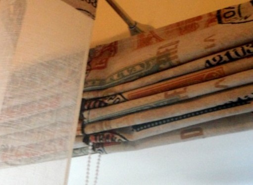 Решение: Римская штора сделана на все окно, служит только для закрытия на ночь. Поверх нее висит тюль на люверсах, как декоративный элемент.