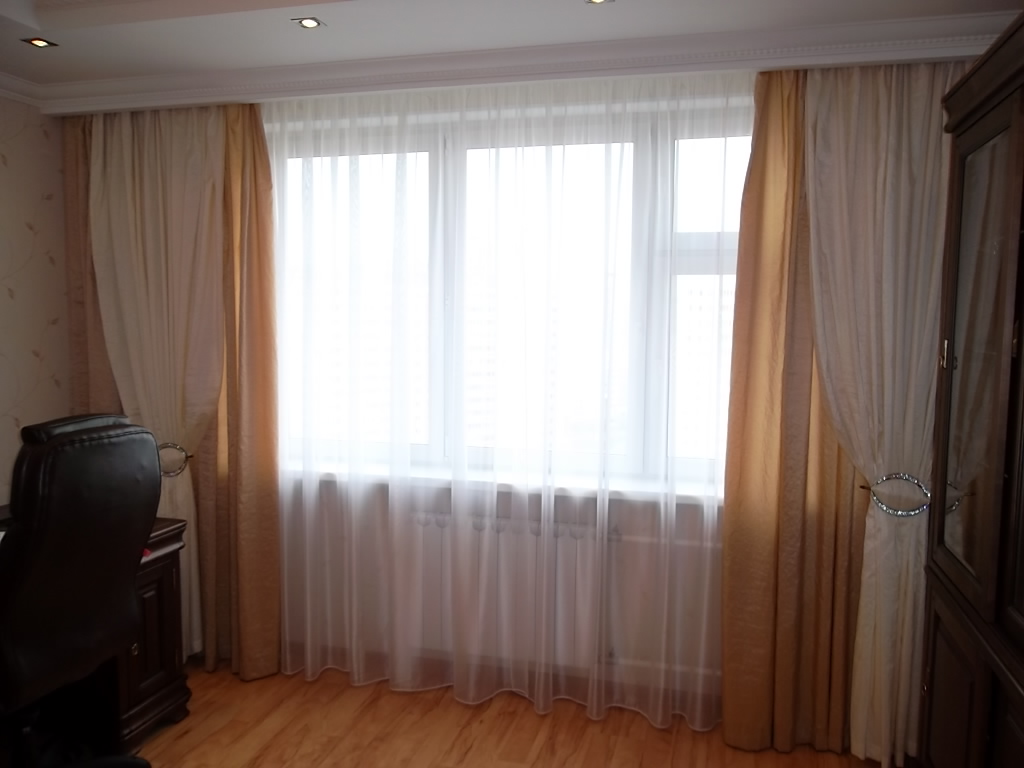 Портьера плотная состоит из наложенной светлой ткани на темную ткань. С такими шторами можно поэкспериментировать (драпировать их как душе угодно).
